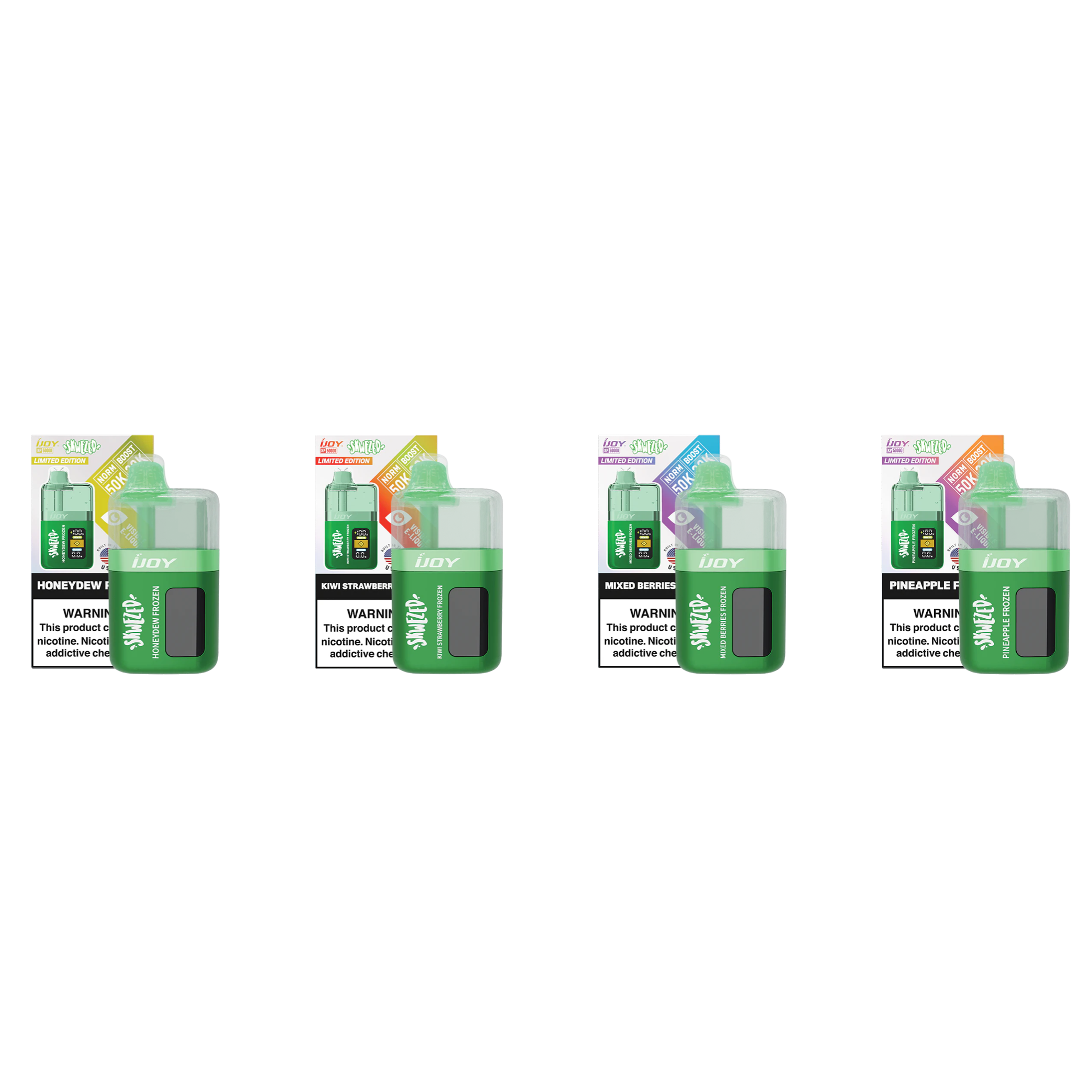 The Skwezed x iJoy Disposable merges flavor mastery with reliable hardware performance. Featuring 20mL of premium Skwezed e-liquid and a cooling menthol finish, this device provides smooth, invigorating draws. Dual power modes allow up to 50,000 puffs in Normal Mode or 30,000 puffs in Boost Mode. Monitor battery life with the LED display and check e-liquid levels through the clear viewing window. Powered by a 1000mAh rechargeable battery with USB-C charging, this USA-manufactured disposable is built for convenience and consistent satisfaction.