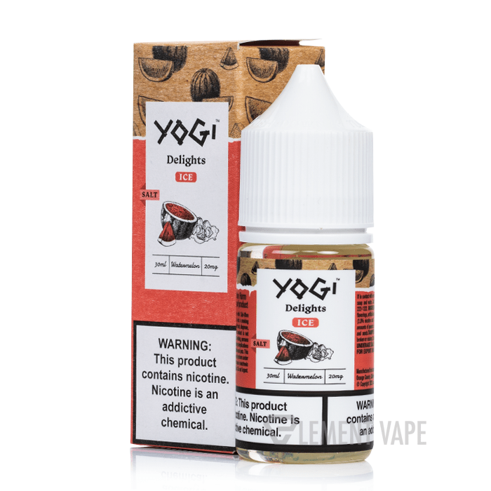 Enjoy the refreshing taste of sliced watermelon with an icy twist in Watermelon Ice Salts by Yogi Delights, crafted in a nicotine salt base for a satisfying vape.